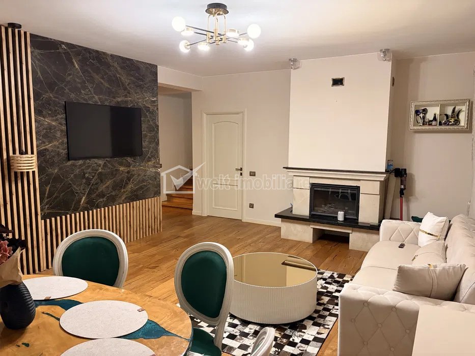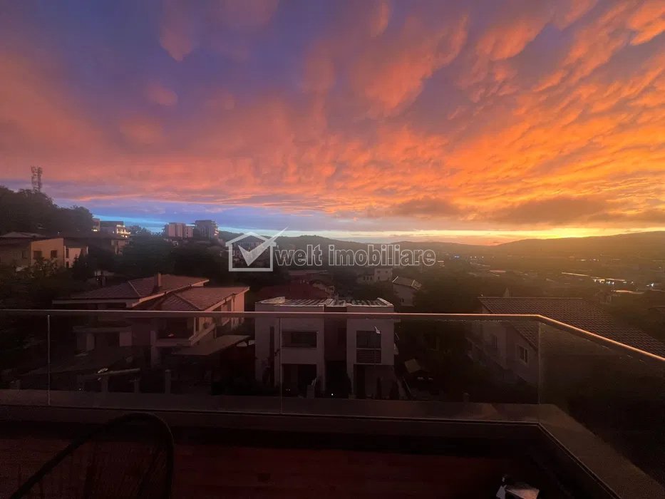 Va oferim spre vanzare casa exclusivista pe doua nivele si terasa rooftop, intr-o zona privata de case. Casa are o suprafata utila de 210 mp, 2 garaje, magazie de 50 mp, crama de 50 mp si 5o mp terasa rooftop.Casa este compartimentata astfel: la subsol avem 2 garaje, magazie, crama, camara si baie; la parter living cu bucatarie OPEN space, 2 camere, dresing si 2 bai; etajul este format din 2 camere, living spatios bucatarie inchisa, iar mansarda are o camera mare, o baie generoasa si o terasa rooftop cu o priveliste minunata. Imobilul atinge cele mai exigente cerinte privind calitatea materialelor, locatia, calitatea finisajelor fiind de top iar parchetul este din lemn masiv. Cladirea este construita la cele mai inalte standarde cu un aspect modern si exclusivist, terasa rooftop are o panorama deosebita si un loc pentru gratar. Curtea are 130 mp cu zona de relaxare, piscina si sauna.