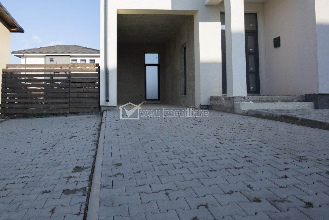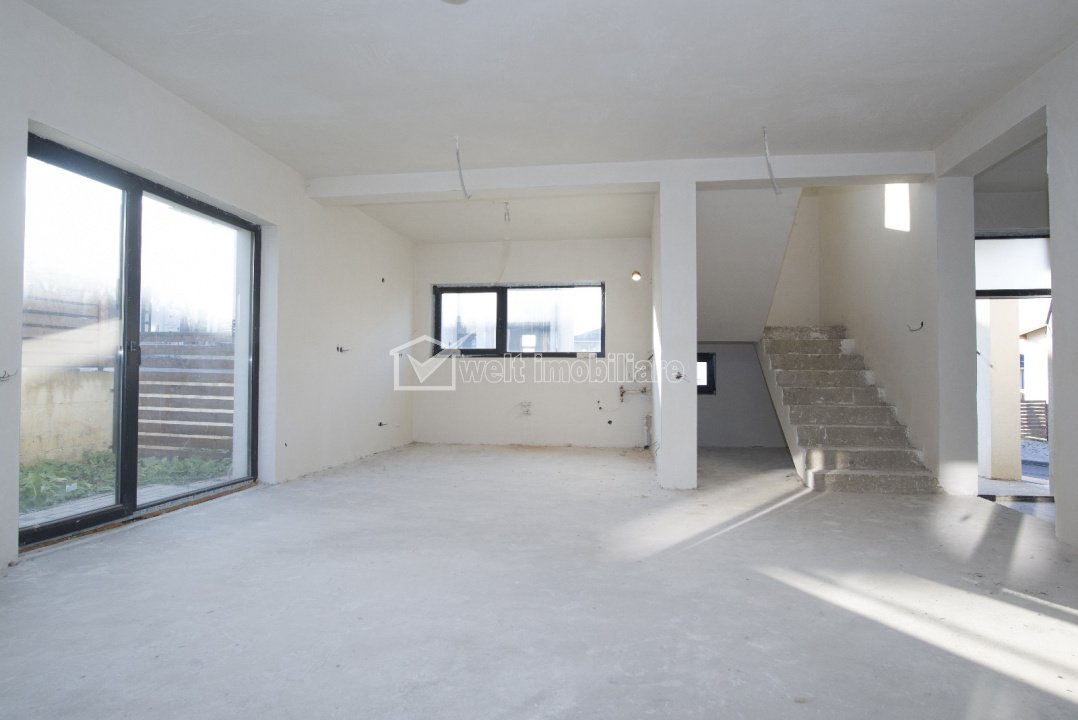- parter: hol, baie, living spatios cu acces la terasa, bucatarie, spatiu de depozitare si acces direct in garaj.