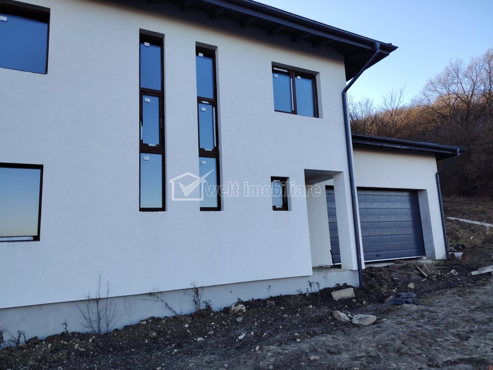 De vanzare casa/vila intr-o zona linistita cu o panorama frumoasa. Imobilul se vinde in stadiul semifinisat si este compus din: PARTER+ETAJ. Compartimentarea este facuta dupa cum urmeaza: la parter avem garaj inchis pentru 2 masini cu acces direct in living printr-un hol, living cu bucatarie (open-space) si loc de luat masa, camara si baie. Tot la parter va asteapta o terasa generoasa cu iesire din living. La etaj avem: 3 dormitoare, dintre care unul matrimonial cu dresing si baie proprii, un spatiu de depozitare, casa scarii cu holul si o baie. De asemenea dormitorul matrimonial are un balcon spatios cu iesire din baie si cu priveliste spre natura. Fatadele exterioare sunt termoizolate si finisate cu tencuiala decorativa. Curtea se preda imprejmuita si amenajata. Suprafata de teren pe care este construit imobilul este de 500 mp. Va asteptam sa va convingeti si sa cumparati.