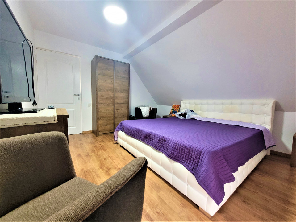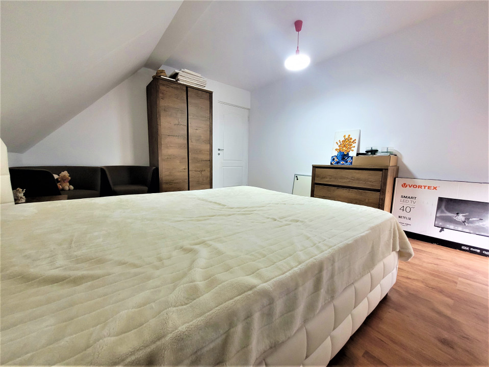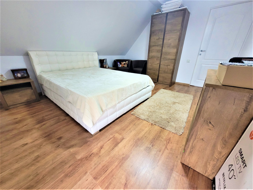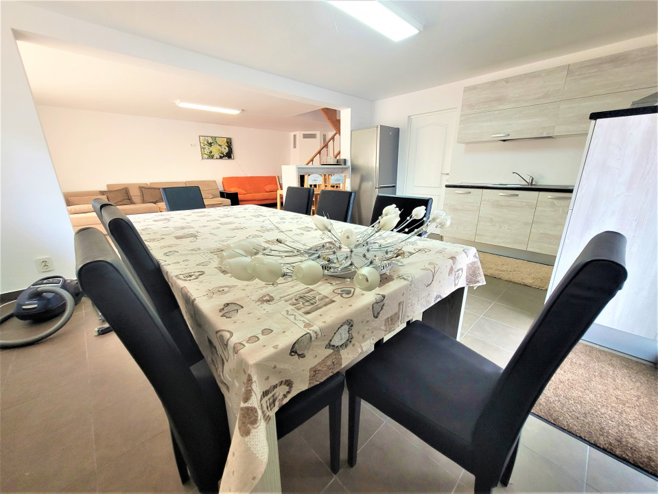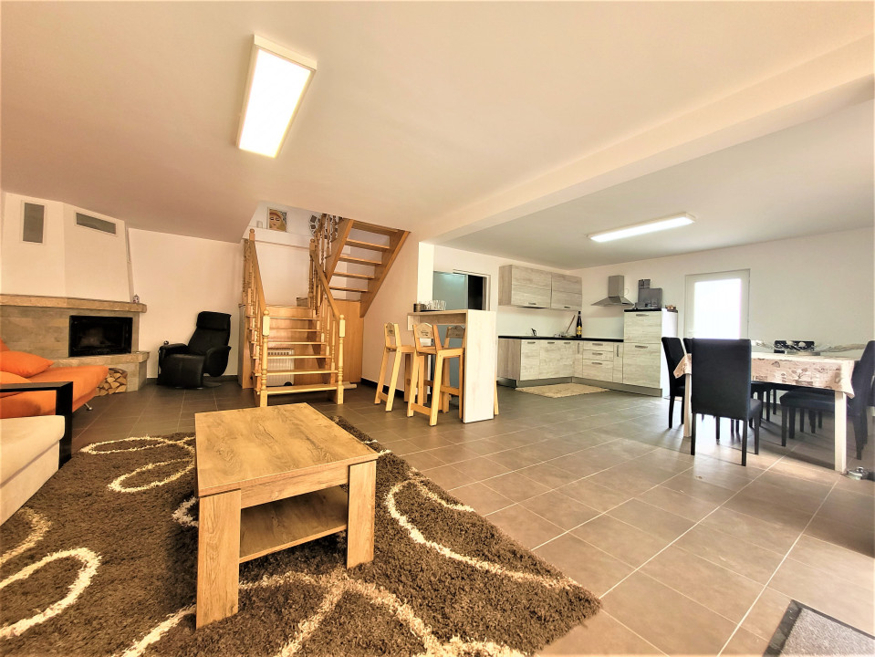 Koncept Imobiliare va propune spre vanzare o casa individuala situata in localitatea Gilau, intr-o zona linistita, cu acces rapid la principalele puncte de interes. Proprietatea beneficiaza de o pozitionare avantajoasa si de o curte generoasa, ideala pentru cei care isi doresc confort si intimitate la doar cateva minute de Cluj-Napoca. Casa este dispusa pe doua niveluri, parter si mansarda, avand o suprafata utila de 160 mp si fiind amplasata pe un teren de 950 mp. Compartimentarea actuala cuprinde 5 camere, o baie, bucatarie, hol, bucatarie de vara, camera tehnica, sas si alte dependinte. Spatiile pot fi recompartimentate cu usurinta, ceea ce ofera flexibilitate in organizarea interioara. Proprietatea dispune de terasa de 15 mp, balcon de 8 mp si o curte de aproximativ 30 mp. Imobilul este finisat modern, cu accent pe functionalitate si confort, fiind complet mobilat si dotat cu electrocasnice noi, nefolosite. Sistemul de incalzire este asigurat prin semineu si aparat de aer cald, iar orientarea sudica ofera luminozitate naturala pe tot parcursul zilei. Gradina de 800 mp completeaza avantajele acestei locuinte, oferind multiple posibilitati de amenajare. Recomandata ca locuinta de familie, aceasta proprietate se evidentiaza prin gradina generoasa, curtea spatioasa si faptul ca este o casa nou construita, disponibila imediat. Pentru informatii complete, programarea unei vizionari sau pentru a afla oferta noastra completa va stam la dispozitie telefonic, prin e-mail sau la sediul agentiei noastre, pe str. Aviator Badescu, nr. 19, Cluj-Napoca.