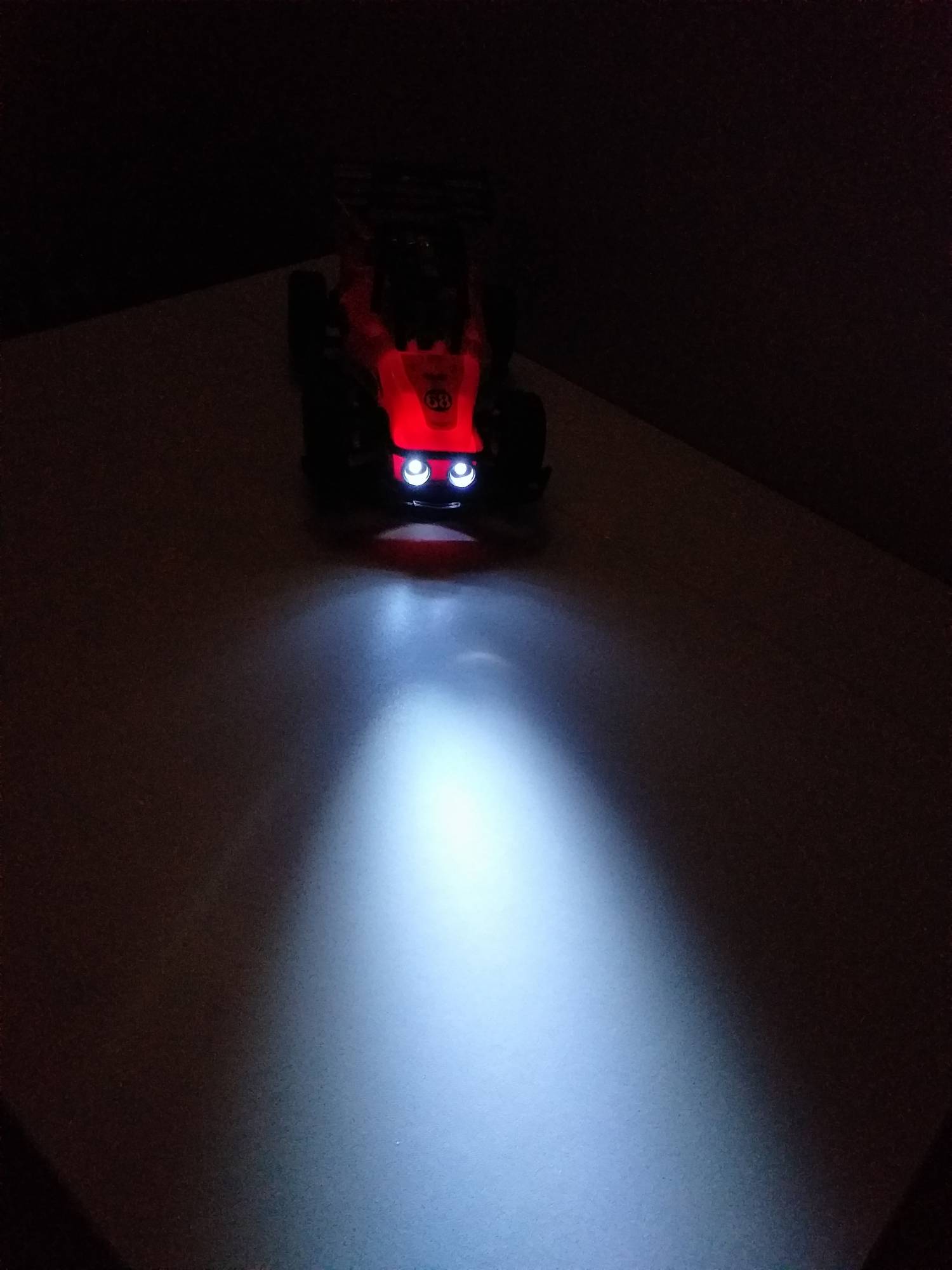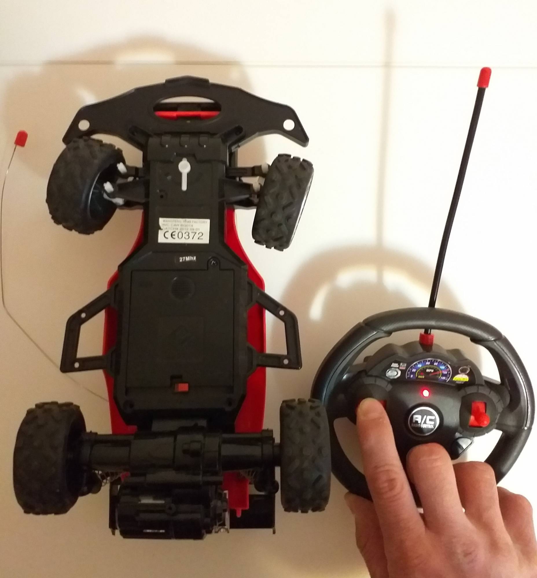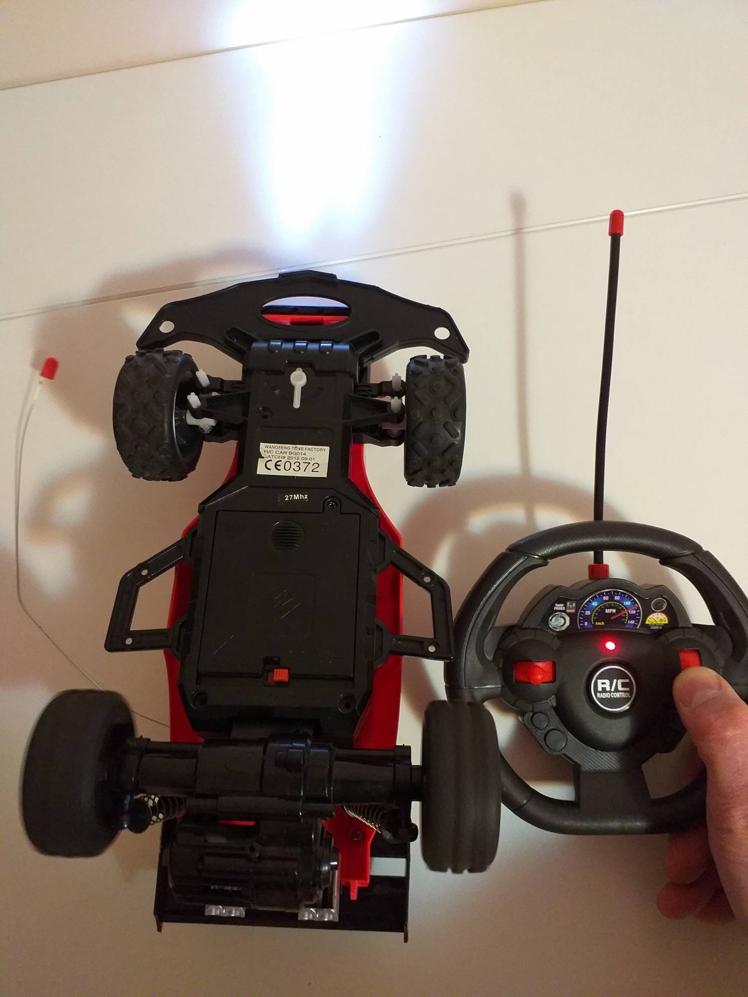 Vand jucaria cu telecomanda din imagini. Masinuta functioneaza cu 4 baterii de tip AA, iar telecomanda cu 2 baterii, tot de tip AA. Perfect functionala si in conditii bune, ca a fost foarte rar jucata, amortizoare pe fata si spate, cauciucuri off road cu crampoane, faruri puternice "xenon" iar ca pilot il aveti pe The Stig de la celebra emisiune Top Gear :)