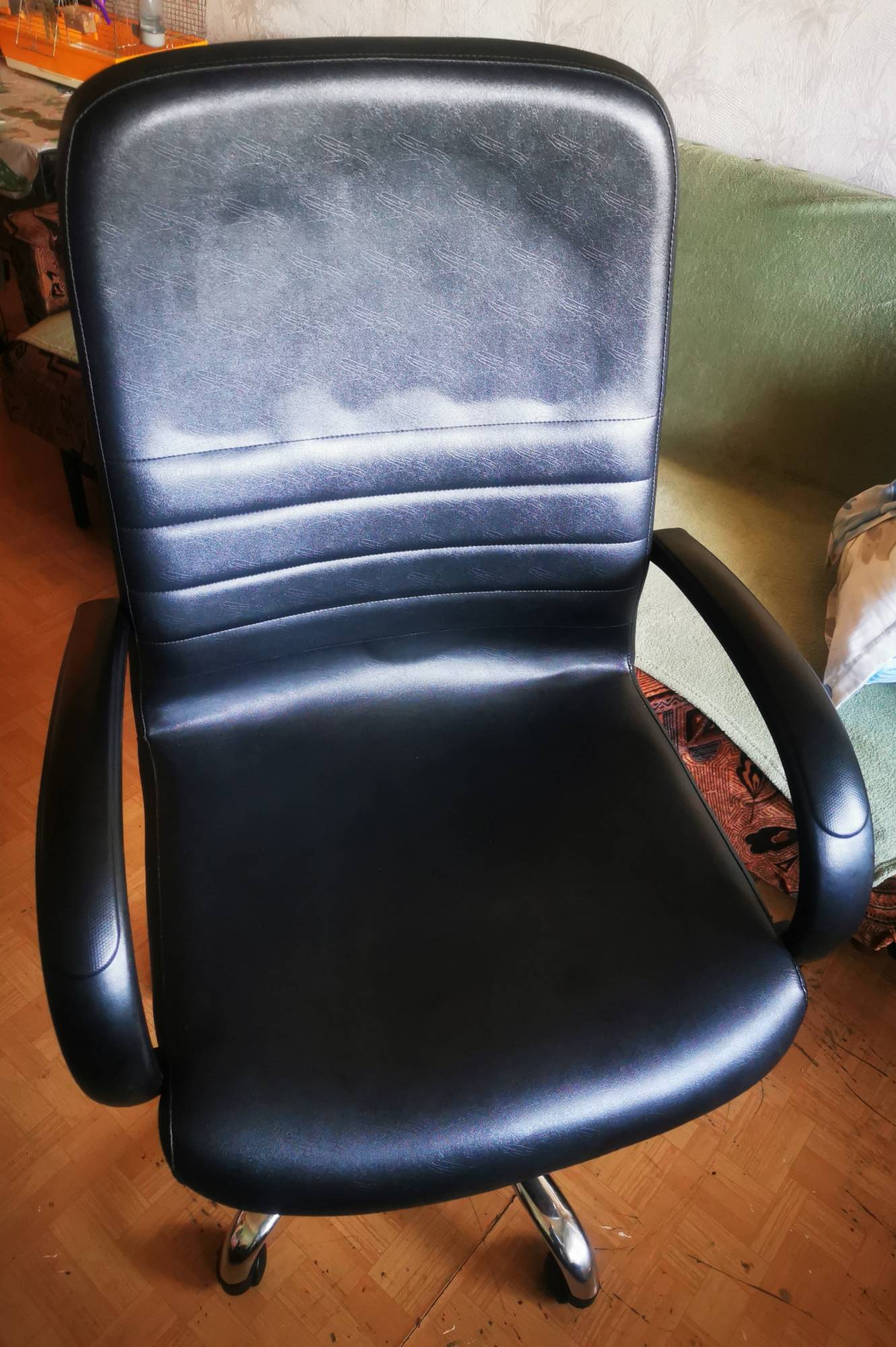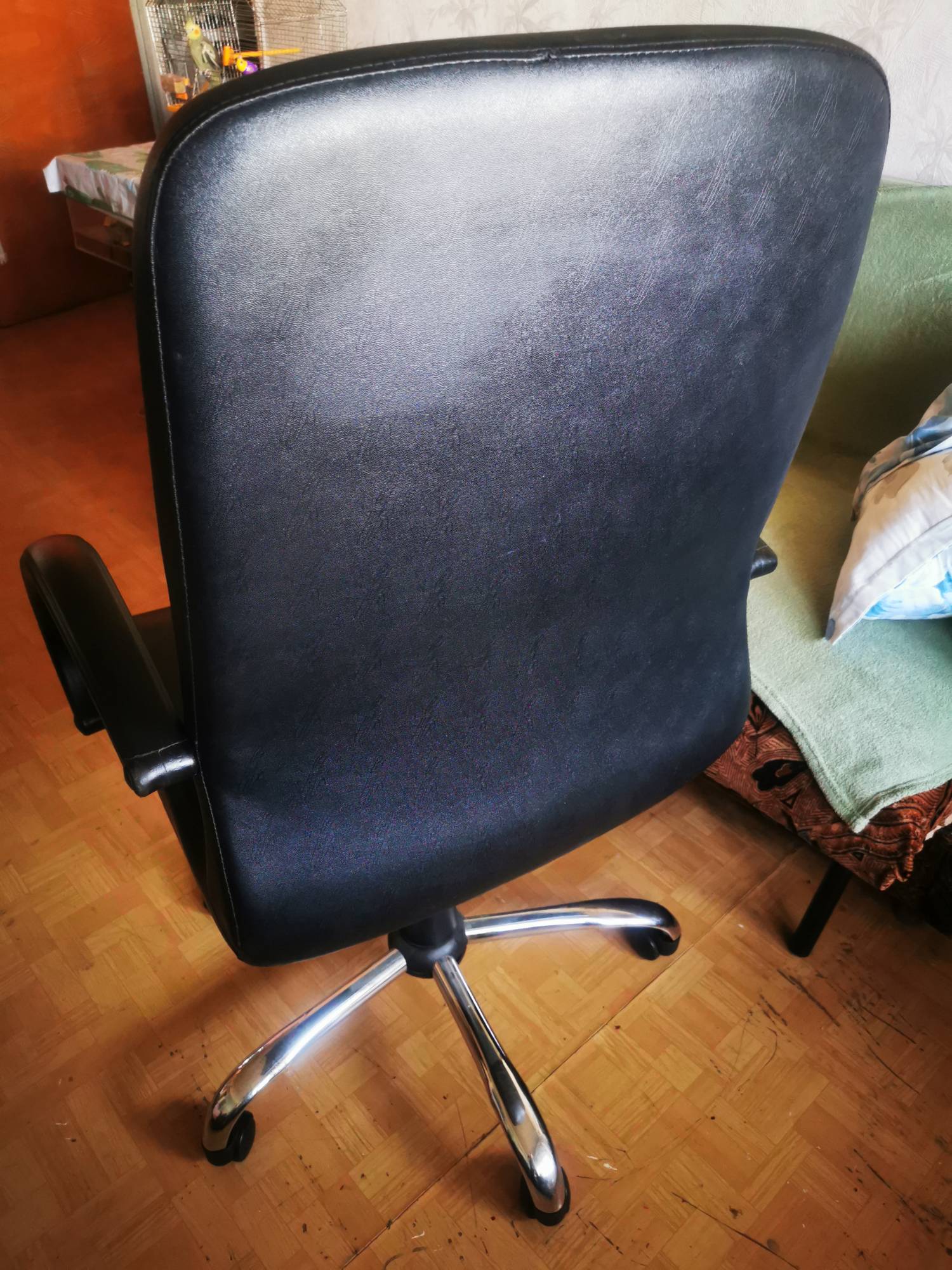 Vând scaunul din imagini, stare bună fără zgârieturi, crapaturi sau exfoliere, mecanismul de balans și de ajustare a înălțimii este perfect funcțional iar roțile se învârt fără probleme.
