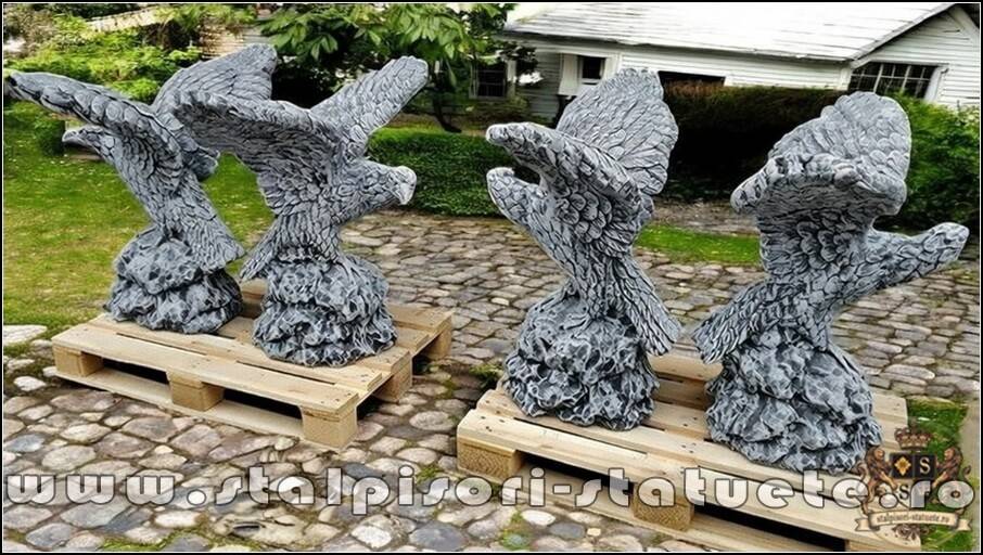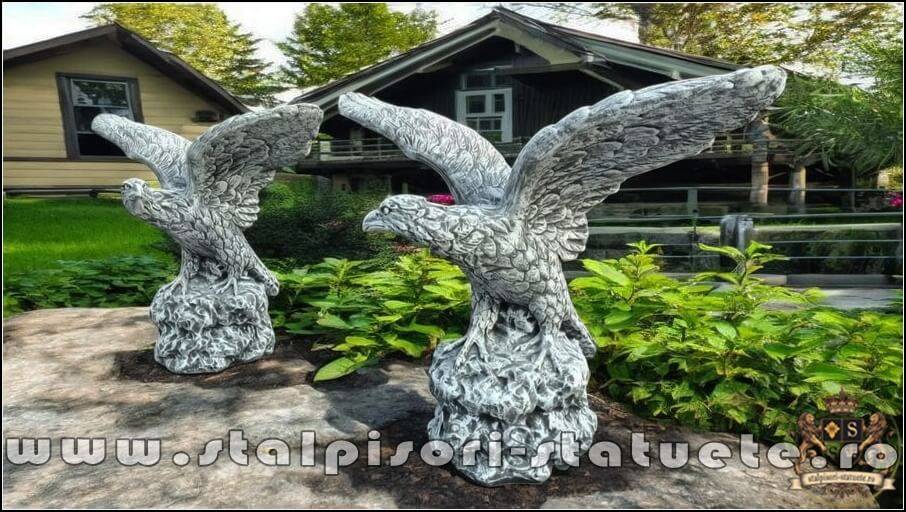 Set statuete vulturi pe stâncă, gri patinat, model S35.