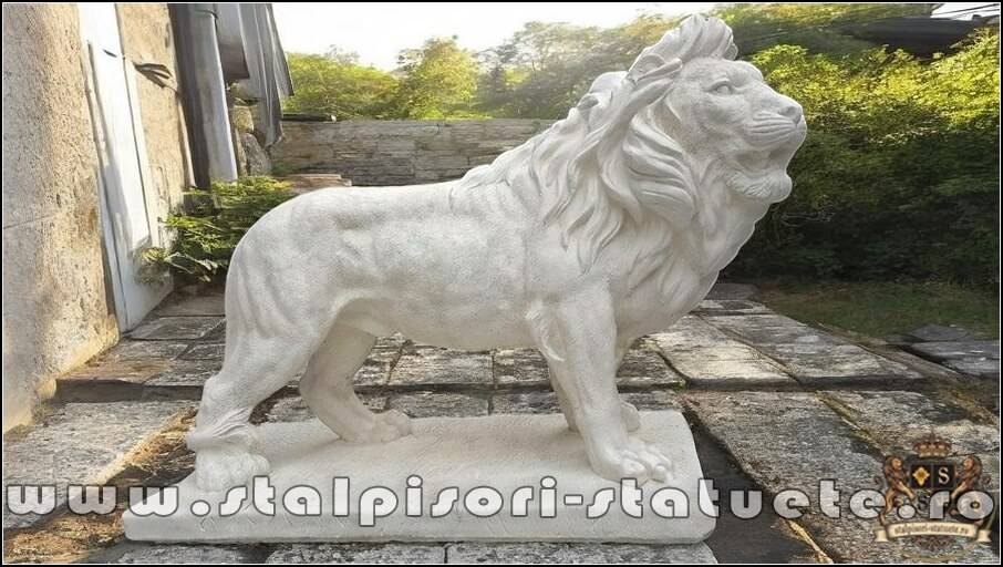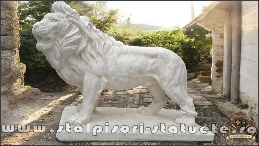 Statuetă leu mare în picioare, alb marmorat, model S33.