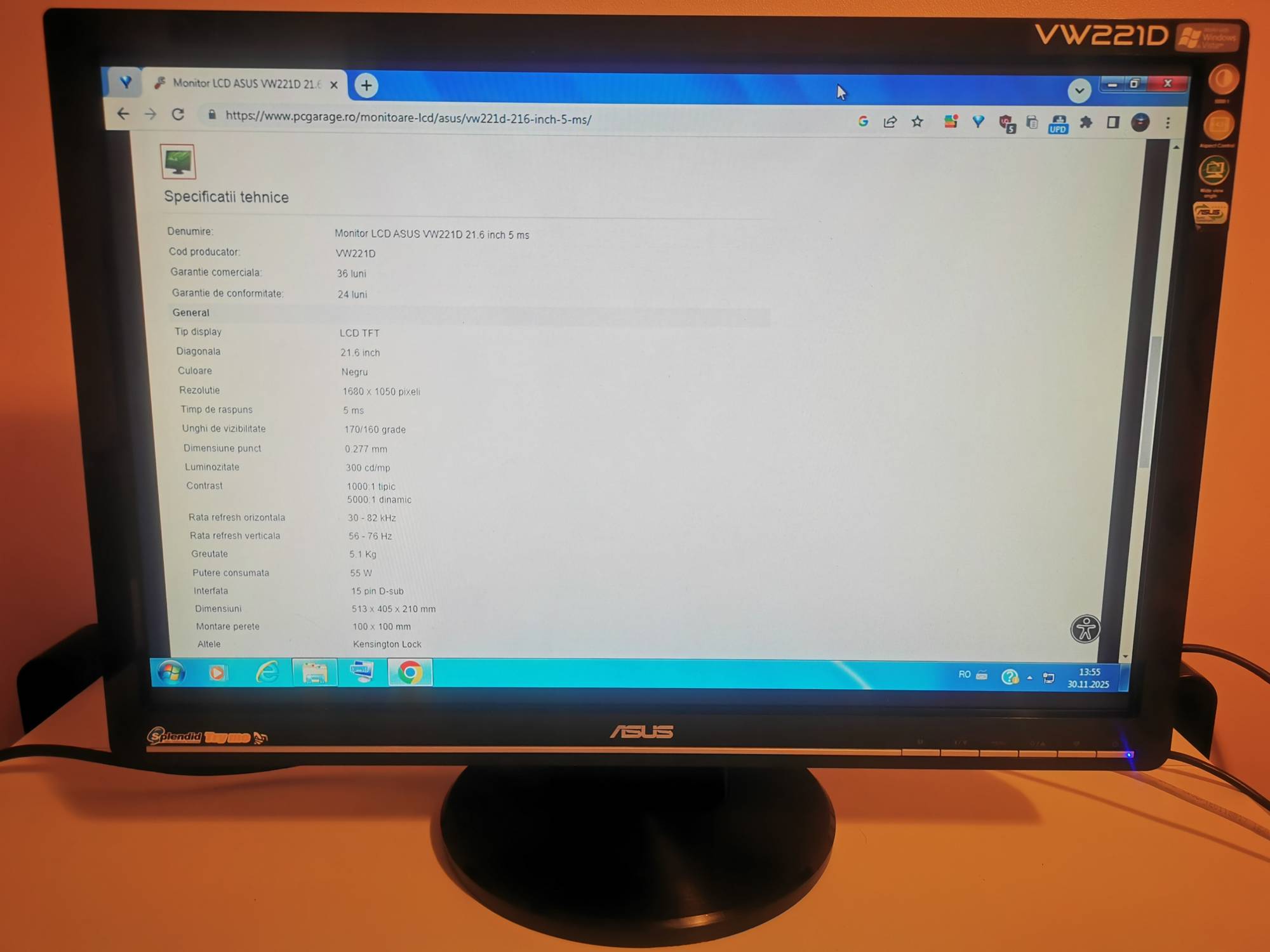 Vand in pretul afisat monitor marca ASUS model VW221D conexiune VGA mai multe specificatii apar in prima imagine, sau le cautati pe internet.Functional, dupa cum se observa.