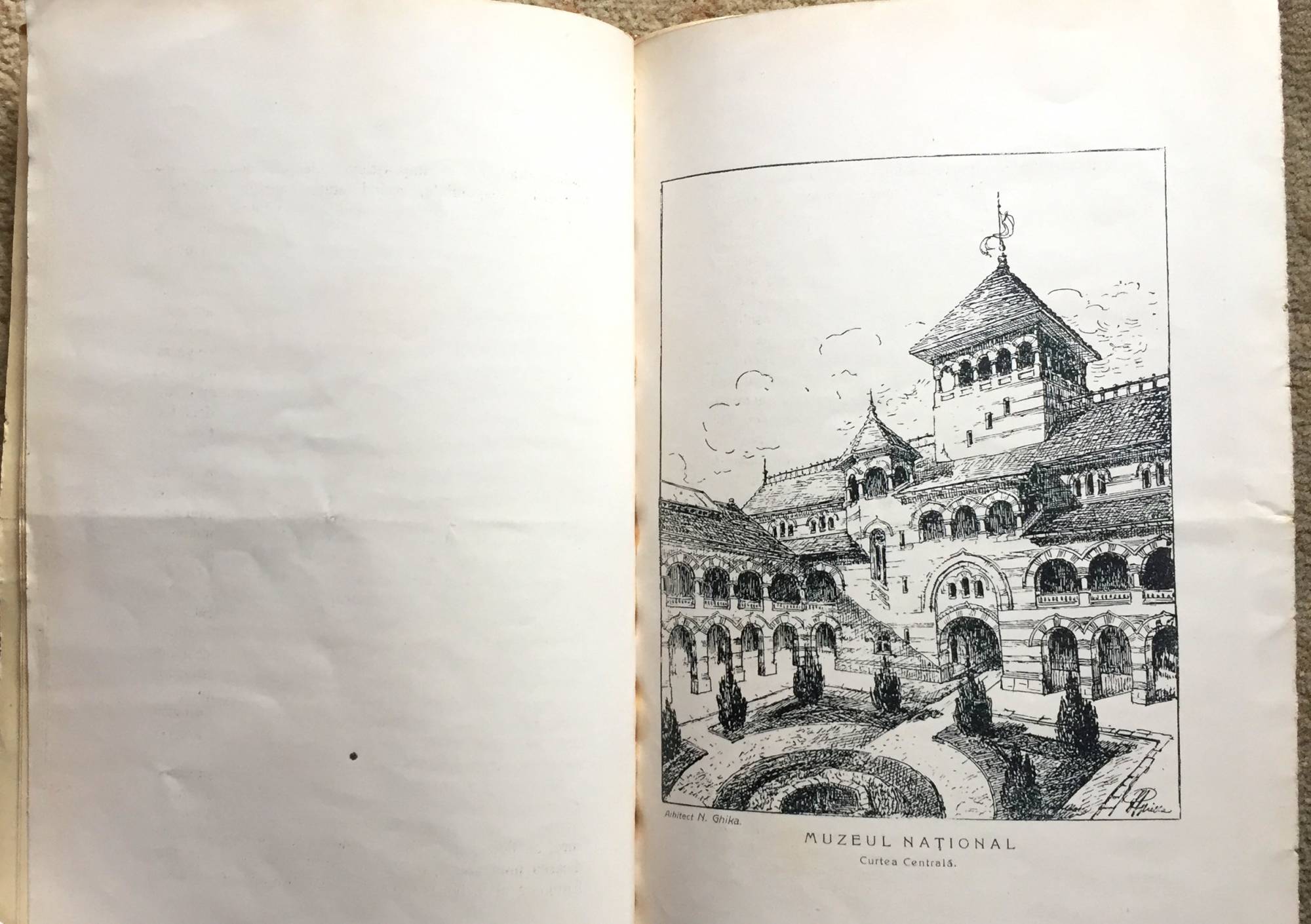 Brosura (26 pagini) tiparita de Institutul de Arte Grafice Carol Gobl in 1907. Are doua foto proiect ale arhitectului N. Ghika-Budesti. Pe coperta 1 este stampila Bibliotecii Regale Carol I.