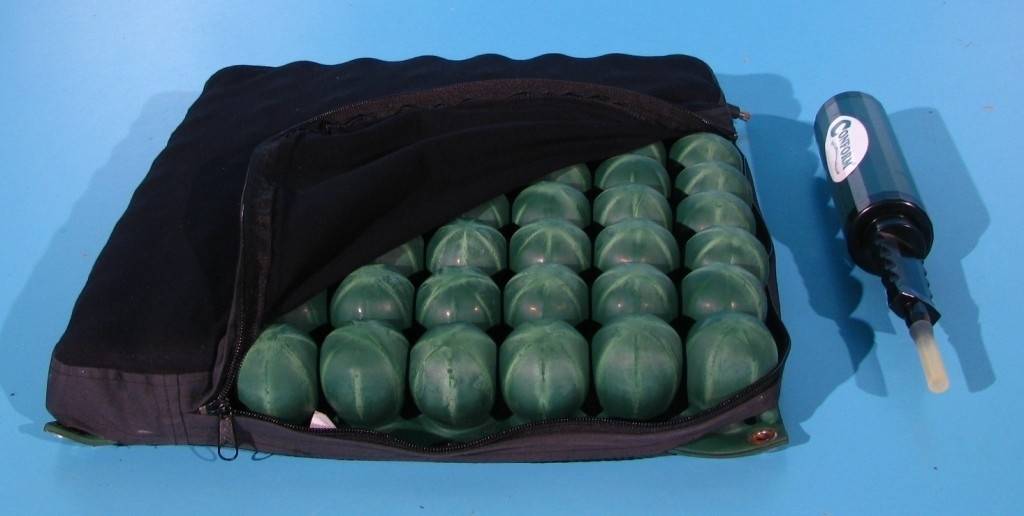 Produs ortopedic prevazut cu celule pe aer care optimizeaza pozitia sezutului, permite aerului sa circule pe dedesubtul pacientului, prevenind astfel aparitia escarelor.