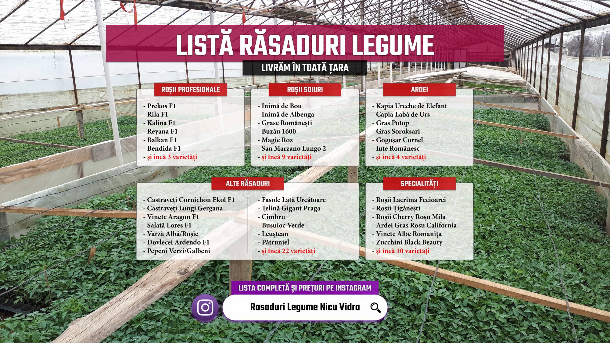 FACEBOOK, TIKTOK, INSTAGRAM, YOUTUBE, cu numele Rasaduri Legume Nicu Vidra