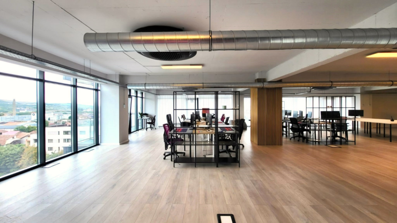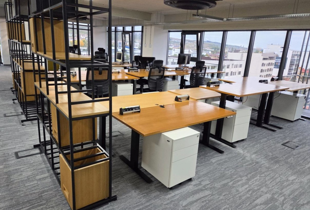 Koncept Imobiliare va ofera spre vanzare un spatiu de birou in cladire de birouri, situat in Cluj-Napoca, pe str. Fabricii, intr-o zona cu acces facil si conexiuni bune catre principalele artere ale orasului. Proprietatea ocupa integral etajul, beneficiind de expunere N-E-S si panorama deschisa catre oras si zona industriala, un avantaj important pentru companii care isi doresc lumina naturala, vizibilitate si o atmosfera de lucru aerisita. Spatiul are 280 mp utili si este completat de 3 balcoane ce insumeaza aproximativ 28 mp. Compartimentarea este preponderent open space, la care se adauga 2 incaperi separate, doua grupuri sanitare, precum si chicineta. Inaltimea utila de 3 m contribuie la confort si la senzatia de spatiu, iar configuratia permite adaptarea usoara pentru activitati diverse, de la sedii de companie, IT, servicii, consultanta sau back-office, pana la activitati medicale, in functie de nevoile de organizare. Finisajele sunt moderne, iar infrastructura tehnica este potrivita pentru un birou functional: ventilatie cu aport de aer proaspat, sistem HVAC cu ventiloconvectoare, 4 zone de climatizare cu setari de temperatura independente, iluminat LED si retelistica completa. Cladirea ofera administrare, doua lifturi, supraveghere video, videointerfon, acces securizat cu cartela si sistem de pontaj, cu acces 24/7, inclusiv pe etaje. Pot fi achizitionate 4 locuri de parcare subterane nominale, cu acces securizat pe baza de telecomanda, iar pentru vizitatori exista posibilitati de parcare in zona. Spatiul este inchiriat. Pentru informatii suplimentare, programarea unei vizionari sau pentru a afla oferta noastra completa va stam la dispozitie telefonic, prin e-mail sau la sediul agentiei noastre, pe str. Aviator Badescu, nr. 19, Cluj-Napoca.