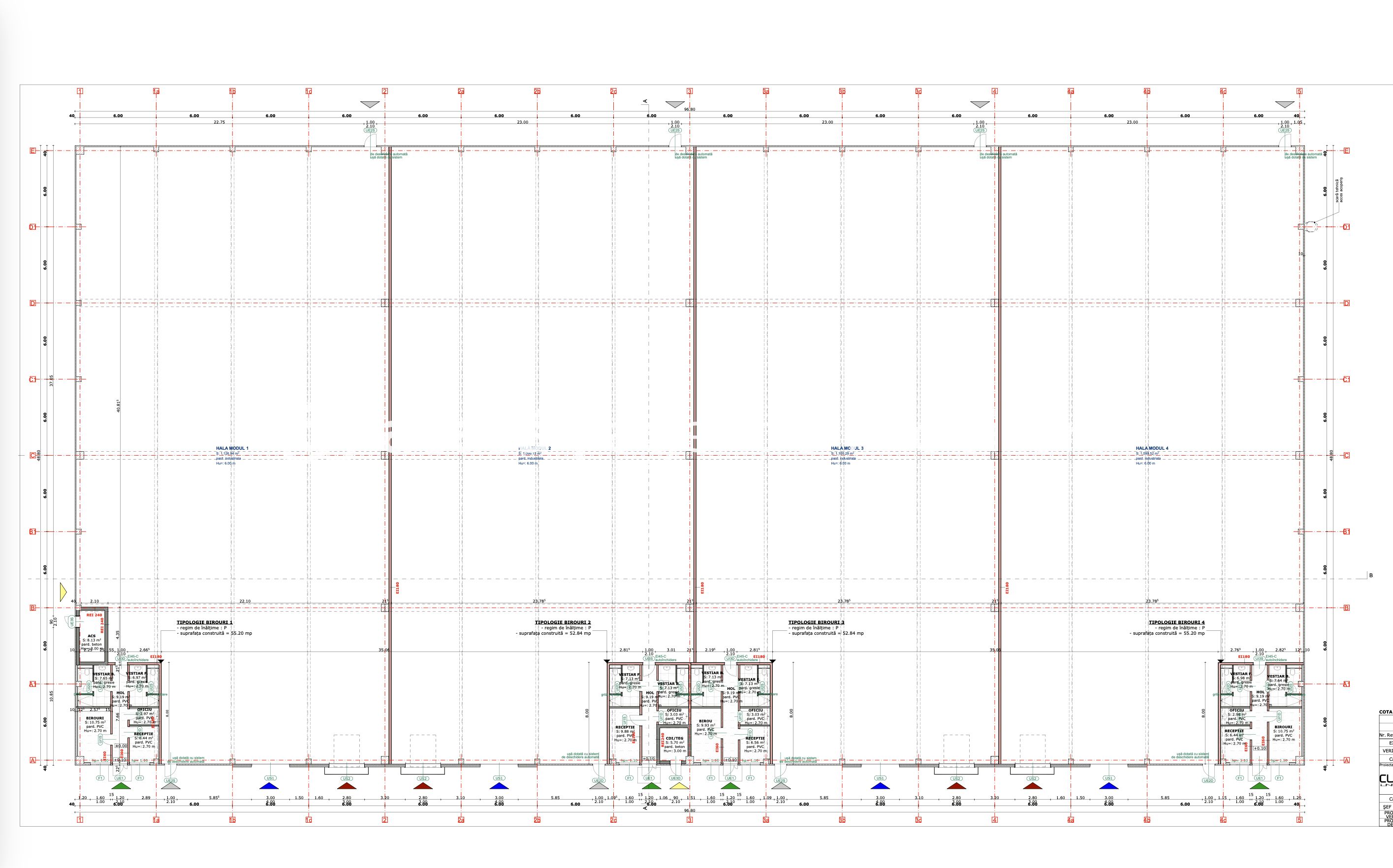 Module flexibile (~1000 m²) sau suprafață totală (4646 m²)