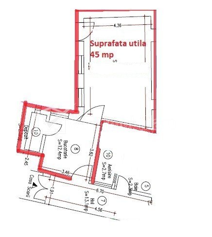 Se ofera spre inchiriere 1 incapere + 1 bucatarie si baie de 45 mp, compus conform schitei, cu posibilitate de extindere.