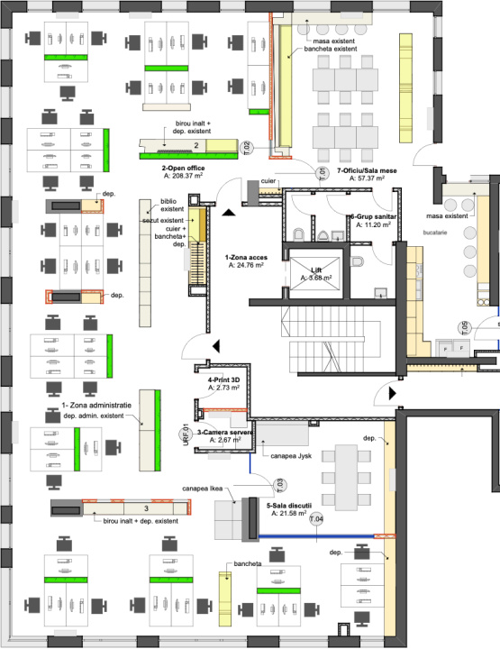 Koncept Imobiliare va ofera spre inchiriere un spatiu de birouri situat in zona centrala, strada Avram Iancu, la nivel de mezanin, intr-una dintre cele mai vizibile si accesibile locatii din Cluj-Napoca. Pozitionarea ofera expunere excelenta, cu suprafete vitrate generoase si acces facil atat pentru angajati, cat si pentru clienti, fiind conectat la mijloace de transport si puncte de interes urban. Spatiul dispune de o suprafata de 330 mp, fiind compartimentat eficient intr-un open space amplu pe un singur nivel, completat de sala de sedinta, IT room, zona de depozitare, bucatarie, doua bai si o zona dedicata sali de mese sau relaxare. Beneficiaza de finisaje moderne, sistem de climatizare, precum,infrastructura pregatita pentru activitati de tip office si dispune de acces securizat. Se poate preda mobilat si amenajat office sau nemobilat in functie de cerinte. Configuratia flexibila permite adaptarea usoara a spatiului in functie de nevoile chiriasului, iar cele 4 locuri de parcare in garajul subteran al cladirii aduc un plus semnificativ de confort operational. Pozitia centrala, vizibilitatea ridicata si compartimentarea eficienta transforma acest spatiu intr-o alegere excelenta pentru companii care pun accent pe imagine si accesibilitate. Recomandam proprietatea pentru sediu de companie, firme din domeniul IT, servicii financiare, avocatura sau orice activitate care necesita o prezenta reprezentativa si un spatiu usor adaptabil. Pentru informatii suplimentare, programarea unei vizionari sau pentru a afla oferta noastra completa va stam la dispozitie telefonic, prin e-mail sau la sediul agentiei noastre, pe str. Aviator Badescu, nr. 19, Cluj-Napoca.