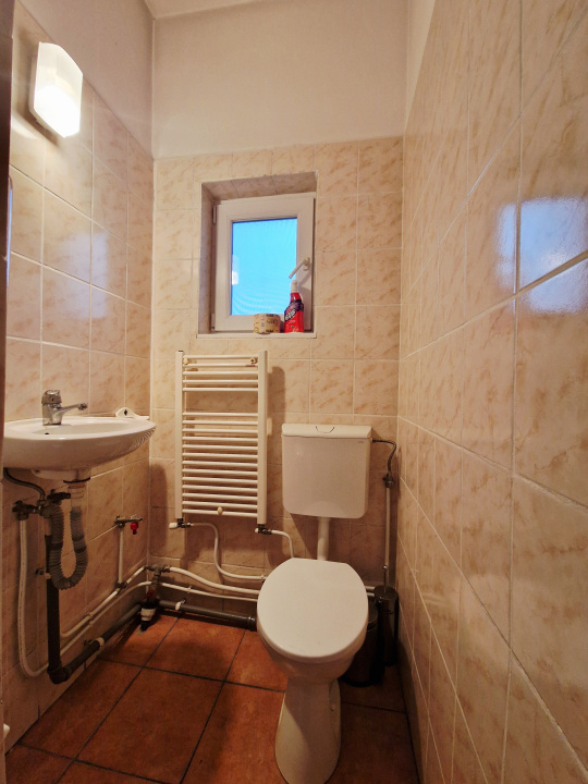 Cu o suprafata utila de 132 mp, spatiul este compartimentat eficient pentru activitati de birou, fiind organizat cu o receptie generoasa, patru birouri distincte, chicineta dedicata si doua grupuri sanitare. Finisajele sunt variate si adaptate zonelor de lucru, incluzand gresie, faianta, parchet si mocheta, iar peretii si tavanele sunt bine intretinute, oferind o imagine curata si versatila pentru diverse tipuri de companii. Incalzirea este asigurata prin centrala termica proprie cu distributie in calorifere, iar utilitatile beneficiaza de contorizare separata pentru curent electric si gaz, ceea ce permite un control eficient al consumului.