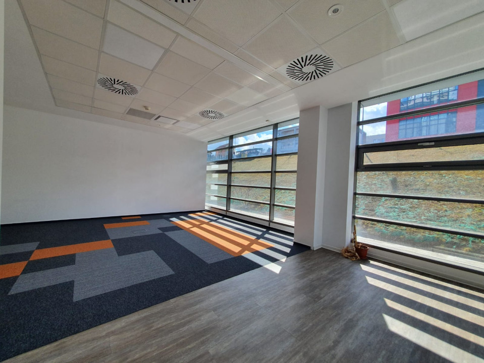 Koncept Imobiliare va ofera spre inchiriere spatii de birouri open-space, in zona Taietura Turcului, intr-o cladire administrativa premium clasa A cu design contemporan industrial. Spatiile disponibile au suprafete de 57 mp si 127 mp. Cladirea se ridica la cele mai inalte standarde de siguranta, confort si sustenabilitate, dispunand de: receptie si lobby, control pe baza de turnicheti in zona de receptie, 4 lifturi KONE de 8 persoane cu comanda colectiv selectiva, 2 statii de incarcare electrica, pardoseala suprainaltata cu atenuarea zgomotului pana la 32 db, zone delimitate de control cu acces pe baza de cartela si cititoare HID, CCTV, 3 centrale de tratare a aerului, etc. Ca si facilitati, cladirea ofera Terasa Oasis de relaxare si evenimente, sala de conferinte (30-300 persoane), Lounge/cafenea si zona de relaxare si intalniri, biciclete electrice (pentru toti chiriasii), games room, parcare vizitatori, restaurante, statii de incarcare electrice, gradinita privata, barber shop etc. la pret se adauga 3,5 euro/mp taxa servicii. Pentru informatii suplimentare, programarea unei vizionari sau pentru a va prezenta oferta noastra completa, va rugam sa ne contactati telefonic, prin e-mail sau la sediul agentiei noastre de pe str. Aviator Badescu nr. 19, Cluj-Napoca.