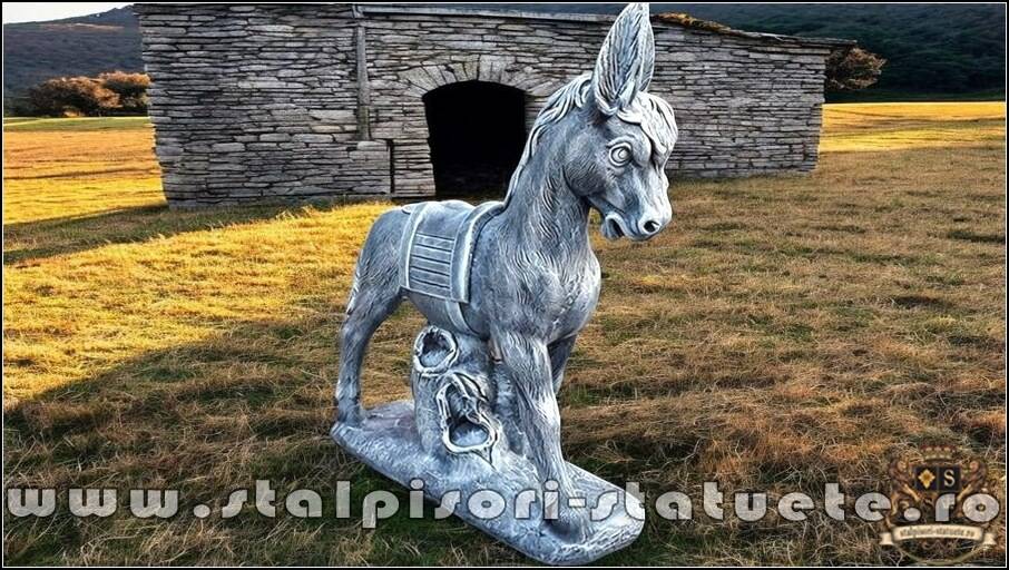 Statuetă măgăruș pe stativ, gri patinat, model S29.