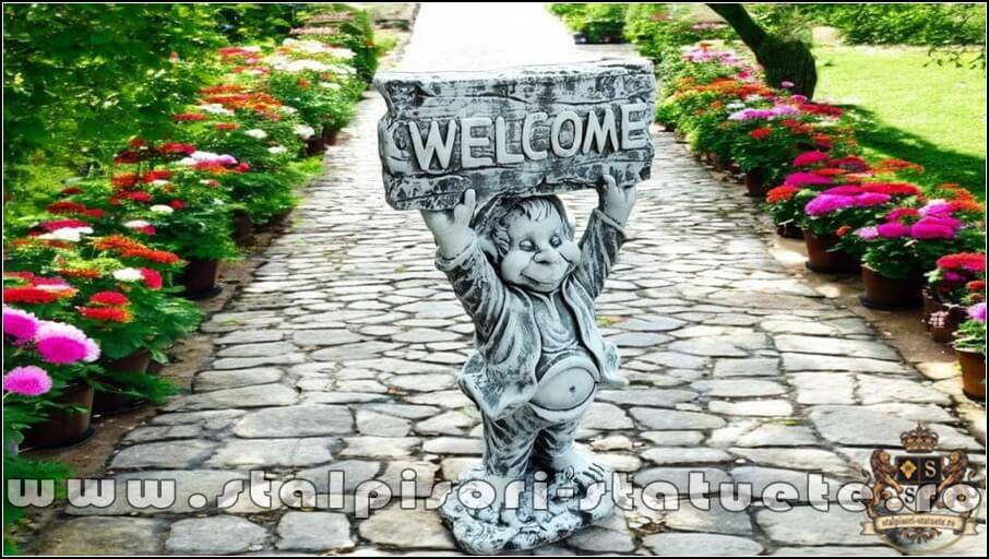 Statuetă pitic trol ''bun-venit,'' din beton, model S21.