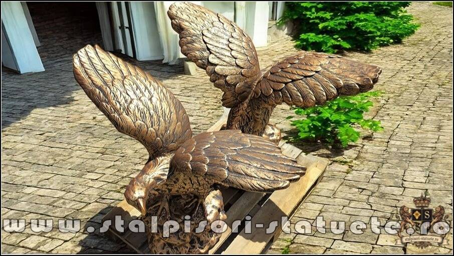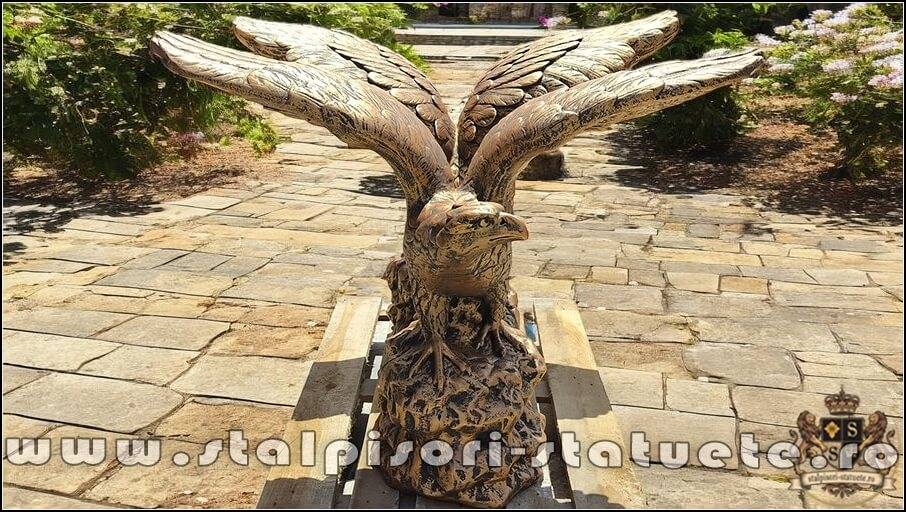 Statuetă vultur pe stâncă, șoim, arămiu patinat, model S35.