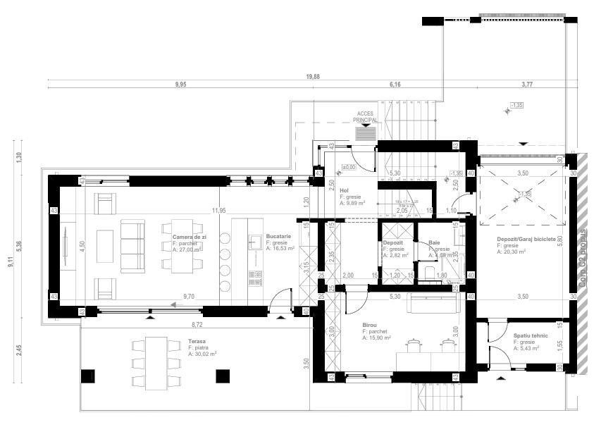 Proprietatea dispune de autorizatie de construire pentru duplex legat doar prin garaje, fiecare unitate avand 176 mp utili, proiectate intr-o maniera moderna si functionala. La parter, fiecare locuinta include camera de zi, bucatarie, birou, baie, spatiu de depozitare, garaj si spatiu tehnic, insumand 103 mp. Etajul este dedicat zonei de noapte, cu dormitor matrimonial cu dressing si baie proprie, doua dormitoare suplimentare, baie si spalatorie, total 73,3 mp. Totodata, fiecare unitate beneficiaza de o terasa spatioasa de 30 mp, perfecta pentru relaxare. Pe langa garajul propriu, fiecare unitate dispune de 2 locuri de parcare exterioare, amplasate langa drumul principal, accesul la garaje realizandu-se printr-un drum privat. Zona este caracterizata de constructii moderne, fiind in proces de dezvoltare, cu imobile noi deja finalizate, beneficiind de o priveliste placuta, liniște si aer curat. Acest teren reprezinta o oportunitate excelenta pentru familie, dar si pentru investitori interesati de dezvoltare si revanzare, proiectul autorizat oferind un avantaj competitiv semnificativ in zona. Pentru informatii suplimentare, programarea unei vizionari sau pentru a afla oferta noastra completa va stam la dispozitie telefonic, prin e-mail sau la sediul agentiei noastre, pe str. Aviator Badescu, nr. 19, Cluj-Napoca.