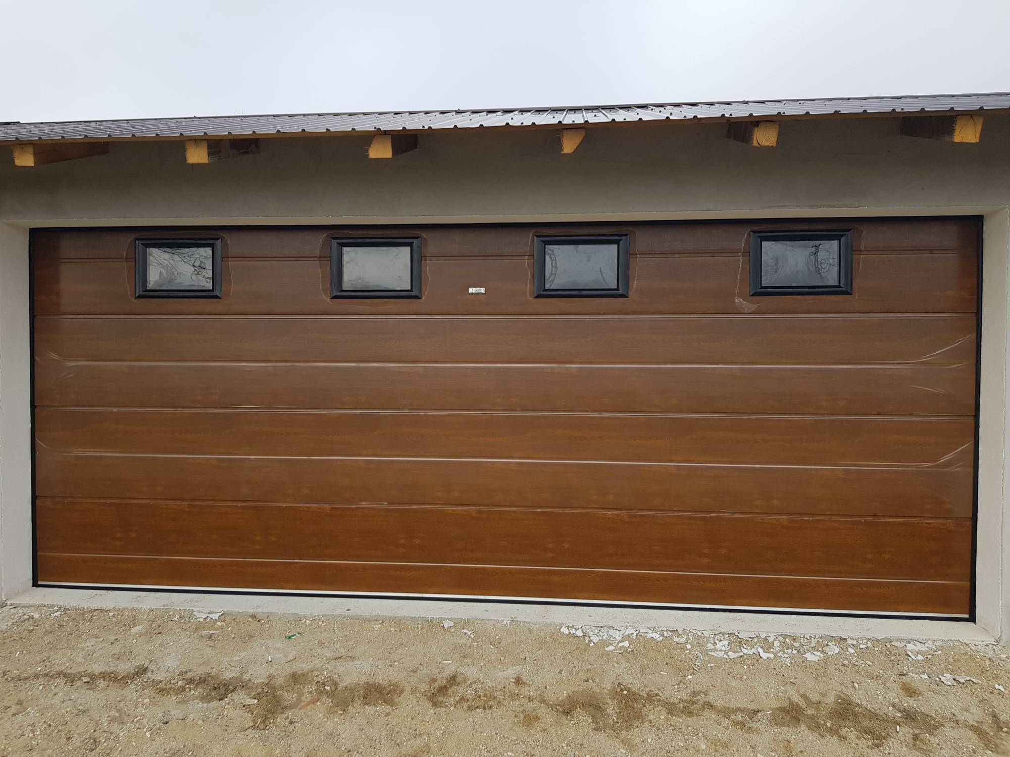usile sunt confectionate din panouri sandwich cu grosimea de 4, 2 cm si inaltimea de 50 cm si 60 cm.usa de garaj este prevazuta cu arcuri de torsiune, cabluri de tractine, tamburi, role cu rulmenti, sine pentru culisare, balamale metalice, chedere de cauciuc pe toate laturile usii si intre panouri.toate aceste caracteristici ofera o izolatie perfecta, o functionare silentioasa, fiabilitate si durabilitate maxima in timp.usile se culiseaza pe tavan si pot fi folosite atat manual cat si cu actionare prin motor electric cu telecomanda.executam orice dimensiune pe comanda.culori standard alb si maro, culori cu diferenta la pret:stejar auriu, mahon, nuc, wenge.