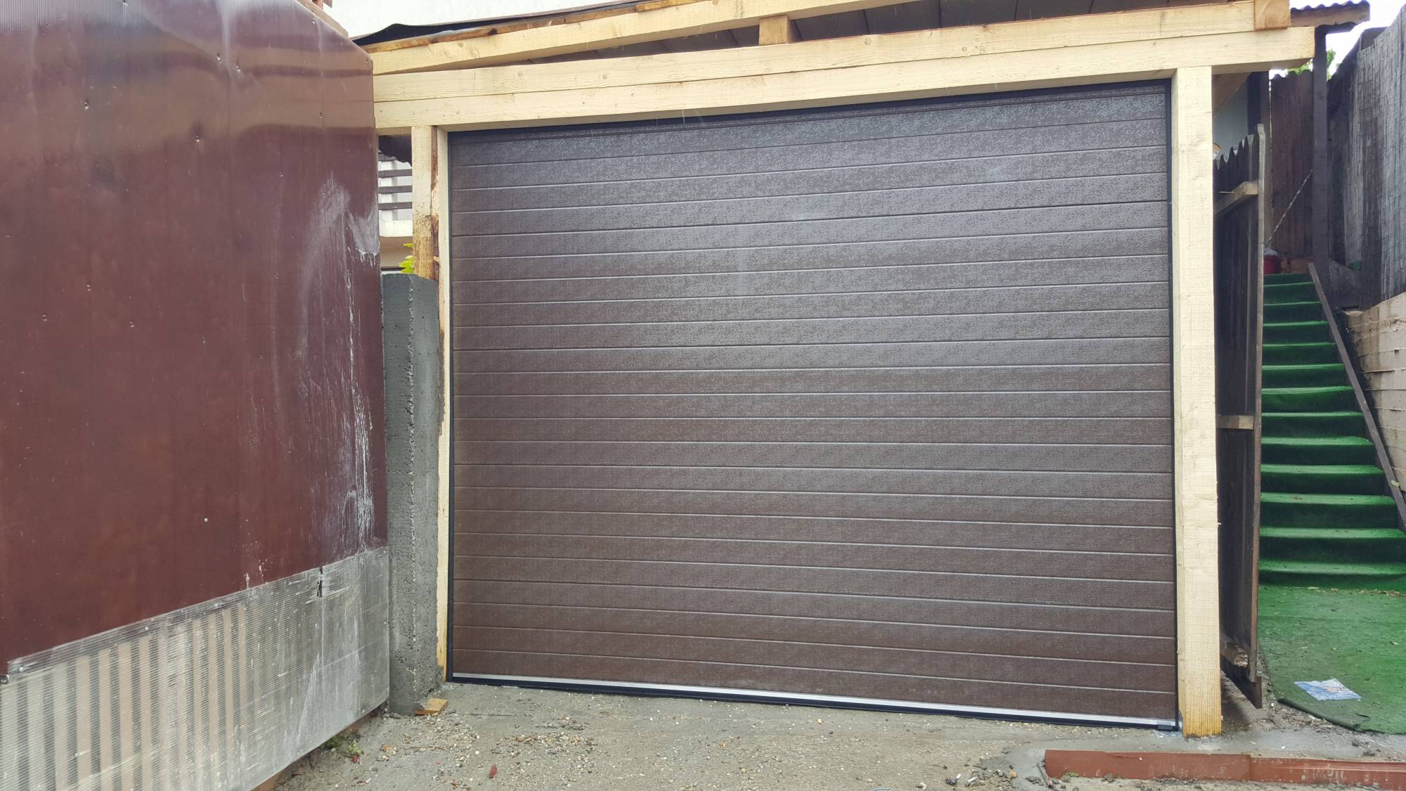 usi de garaj automate, usi de garaj manuale,usi garaj industriale, usi garaj rezidentiale, porti garaj, usi garaj sectionale, usi garaj izolate, usi garaj rulante pe tavan,usi garaj automate cu telecomanda,usi garaj cu motor electric,usi garaj culisante pe tavan,usi garaj rabatabile sau basculante,usi garaj pe comanda,usi garaj electrice.Usile de garaj pot fi montate pe orice suprafata(lemn,metal,beton,zidarie)la garaje auto la case vile sau la bloc precum si la hale industriale silozuri magazii ateliere service si spalatorii auto.Etansarea este asigurata de garniturile dintre panouri si de 4 chedere dispuse de jur imprejurul usii ceace duce la o buna izolare termica si fonica.Deschiderea si inchiderea usilor de garaj se face electric cu sistem de actionare automat +2 telecomenzi si/sau cu actionare manuala. Usa de garaj sectionala este realizata din panouri din tabla de otel izolate termic cu spuma poliuretanica tip sandwich cu grosimea de 42mm.Usile de garaj automatizate sunt prevazute si cu un sistem de deblocare în cazul întreruperii curentului electric.Modelele disponibile sunt : usi garaj cu panouri casetate, usi garaj cu panouri cu linii dese, usi de garaj cu panouri cu o singura linie,usi garaj cu panou neted. Culori standard : usa garaj alba, usa garaj maro, usa garaj gri, alte culori pentru usa de garaj sunt cele de imitatie lemn care sunt mai scumpe: usa garaj stejar auriu, usa garaj stejar inchis, usa de garaj mahon, usa pentru garaj nuc,usi garaj venghe sau wenge.Usile sectionale pot fi dotate cu usa pietonala incorporata, care permite accesul in garaj fara a fi necesara deschiderea intregii usi de garaj.Deasemenea usile pot fi prevazute cu geamuri incastrate sau cu panouri vitrate.Pentru toate asiguram livrarea, montajul, service in perioada de garantie si postgarantie, accesorii si piese de schimb.Pentru mai multe informatii si pentru o oferta de pret concreta contactati-ne:0720959626