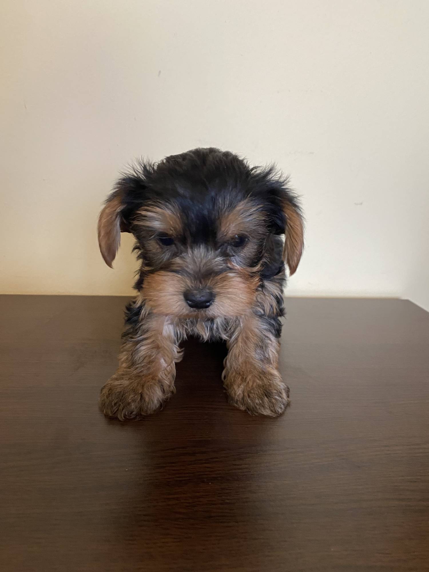 Oferim spre vânzare puiuț din rasa Yorkshire Terrier, în vârstă de 8 săptămâni, crescut cu multă grijă și dragoste în mediul nostru de casă. E obișnuit cu oamenii și copii,fiind crescut în casă.